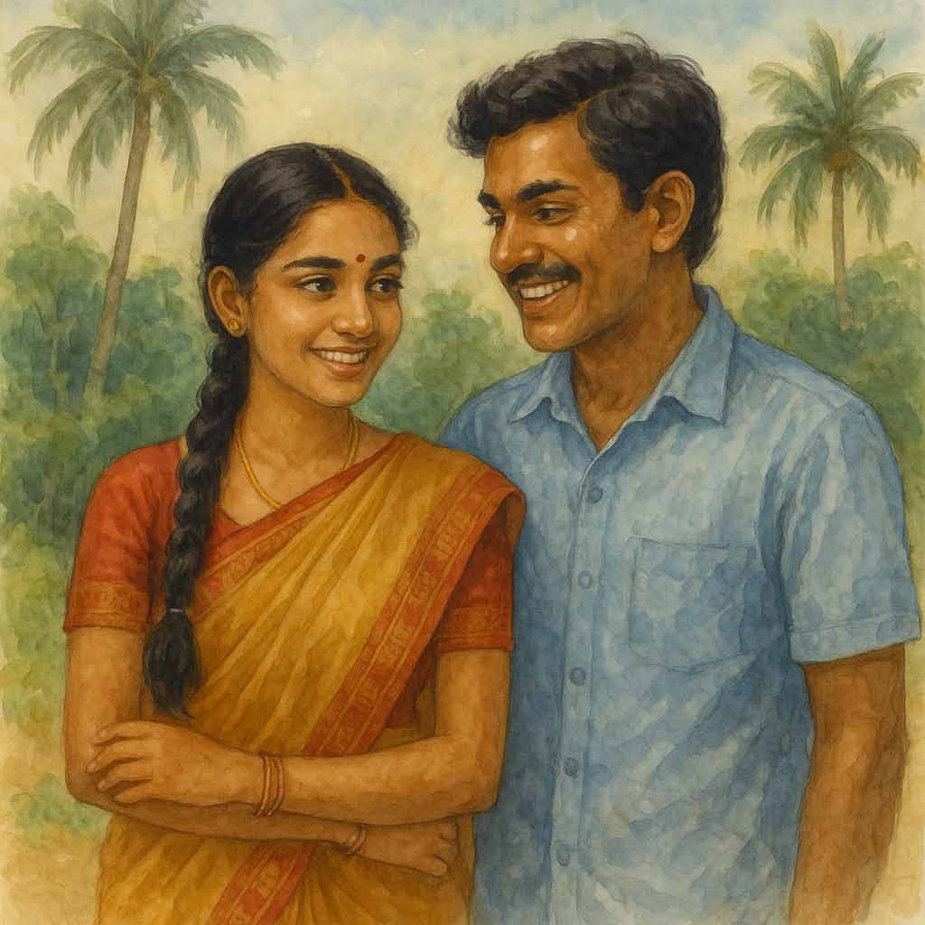 He turned back around. Only then did he notice. In the veranda of the house across the street, Rāsam sat combing her wet hair, oblivious to her surroundings. She refused to believe Thaṇigāsalam despite his earnest and heartfelt proclamations of innocence.
